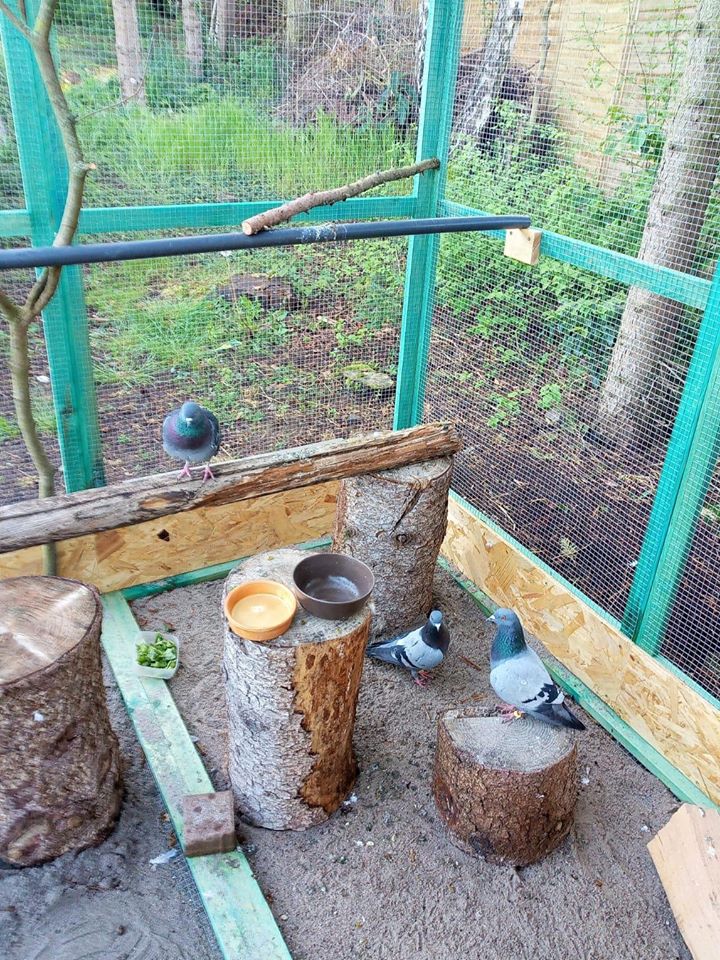 Hann. Münden. Herr Rossi hat seinen Flügelbruch auskuriert und ist mit zwei weiteren Stadttauben in die neue Handicap-Voliere eingezogen.