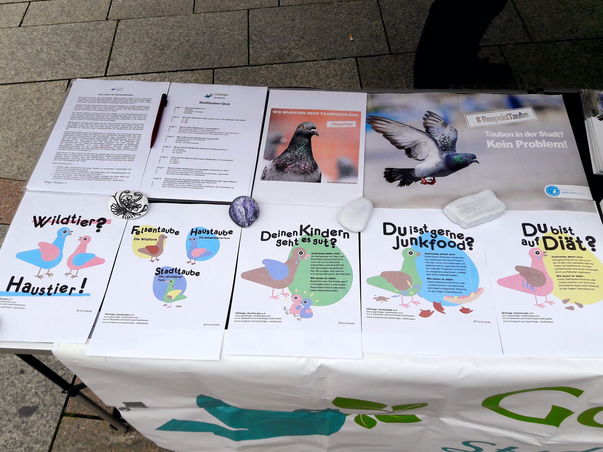 Es war ein gelungener Tag: Nach vier Vereinsjahren scheint unsere Öffentlichkeitsarbeit immer mehr Früchte zu tragen. Die meisten Gespräche waren durchweg positiv, das Feedback überwiegend toll. Sätze wie „Ich kenne euch bereits, ihr leistet wichtige Arbeit für die Stadttauben!“ waren wunderbar zu hören und bestärken uns in unserem Einsatz für die Tauben. #RespektTaube