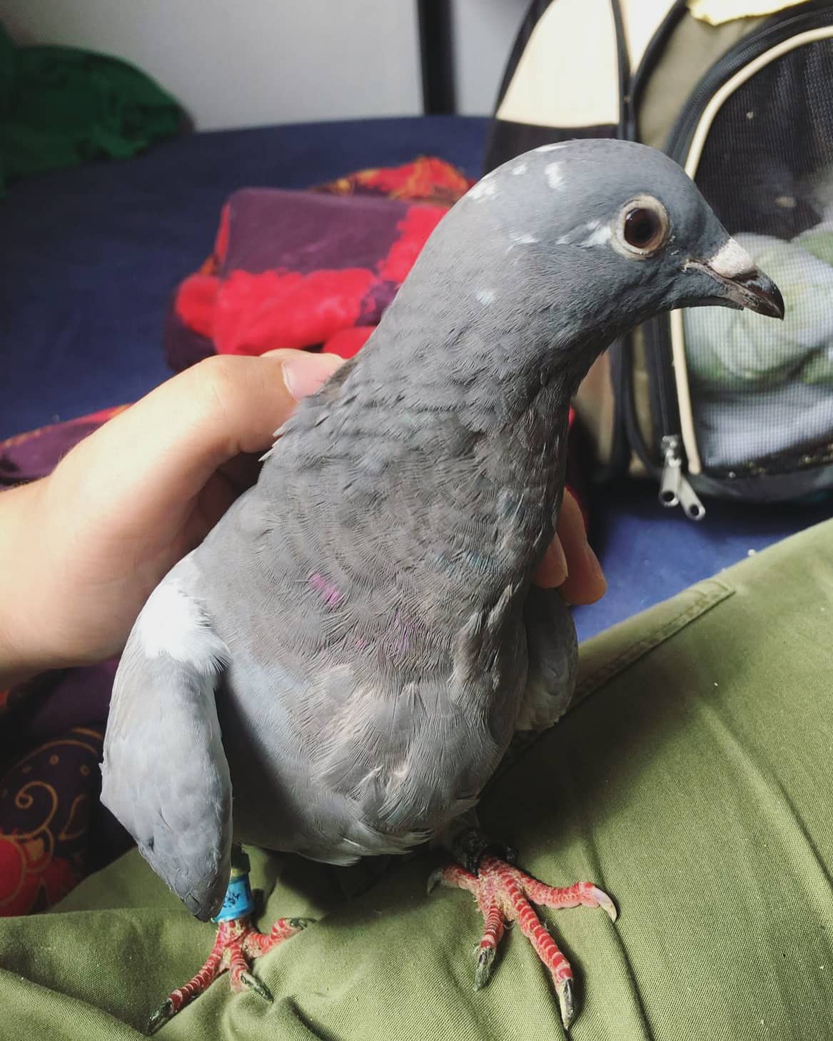 Nino ist leider eine von vielen jungen Brieftauben, die, obwohl sie noch nicht einmal ein Jahr alt ist, schon auf Wettflüge geschickt wurde. Sie hatte Glück im Unglück, dass sie bei uns gelandet ist. Dieses Glück haben viele ihrer Leidensgenossen leider nicht. Der Züchter möchte eine flugunfähige Taube wie Nino nicht zurück, er hätte sie „aussortiert“.