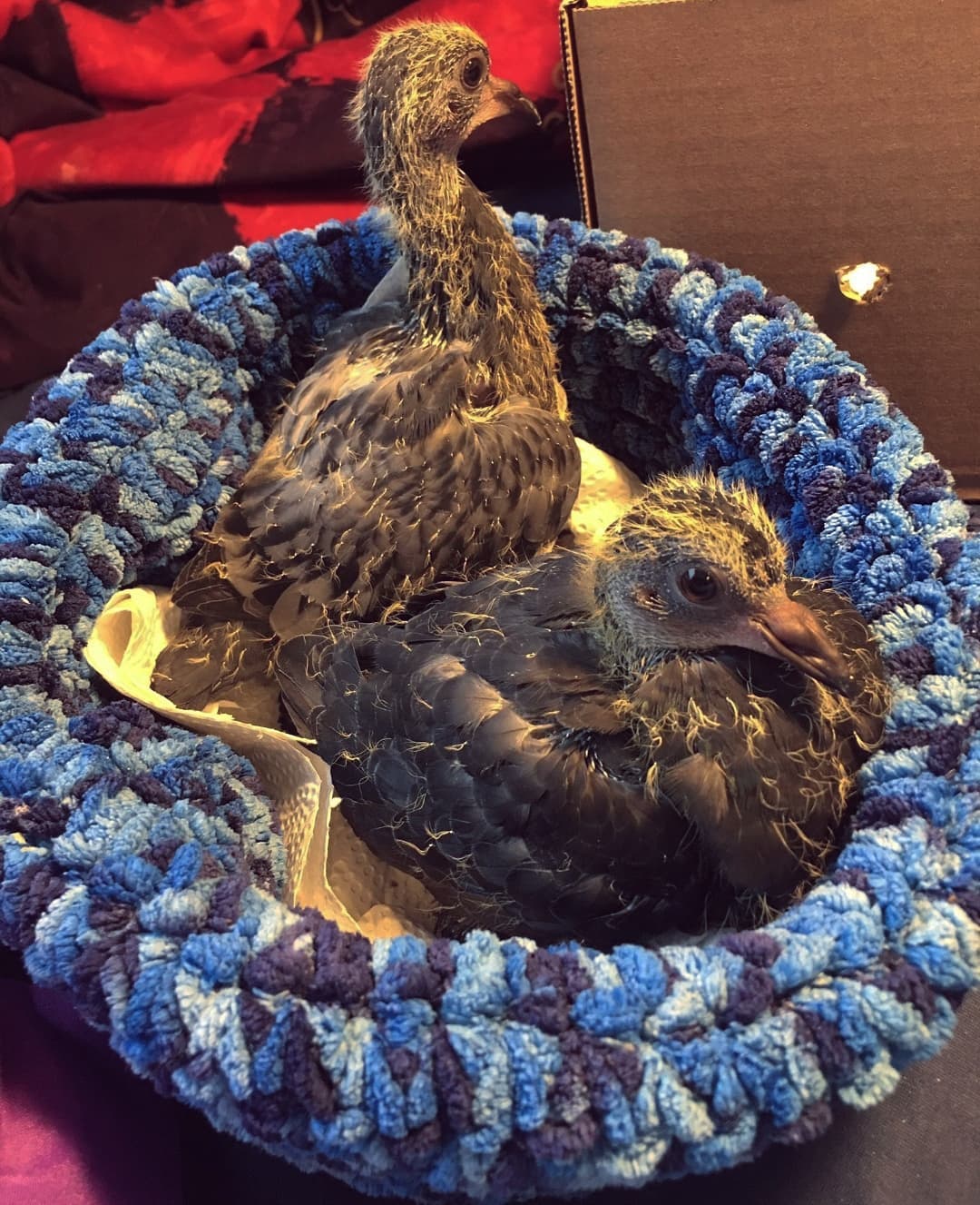Lotte & Luise wurden vom Tierschutz Nordhausen e.V. kurz nach Fred & George ebenfalls in dem Müllcontainer gefunden – neben einem bereits verstorbenen Küken.