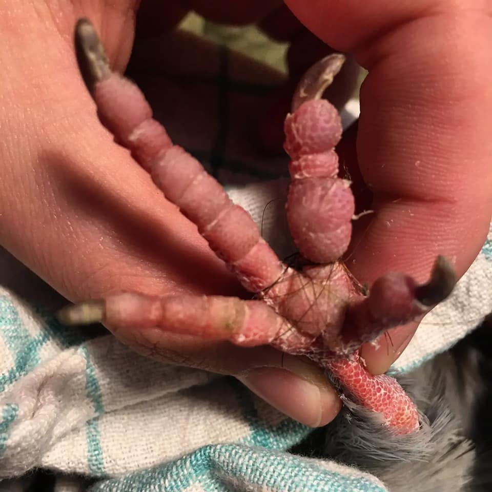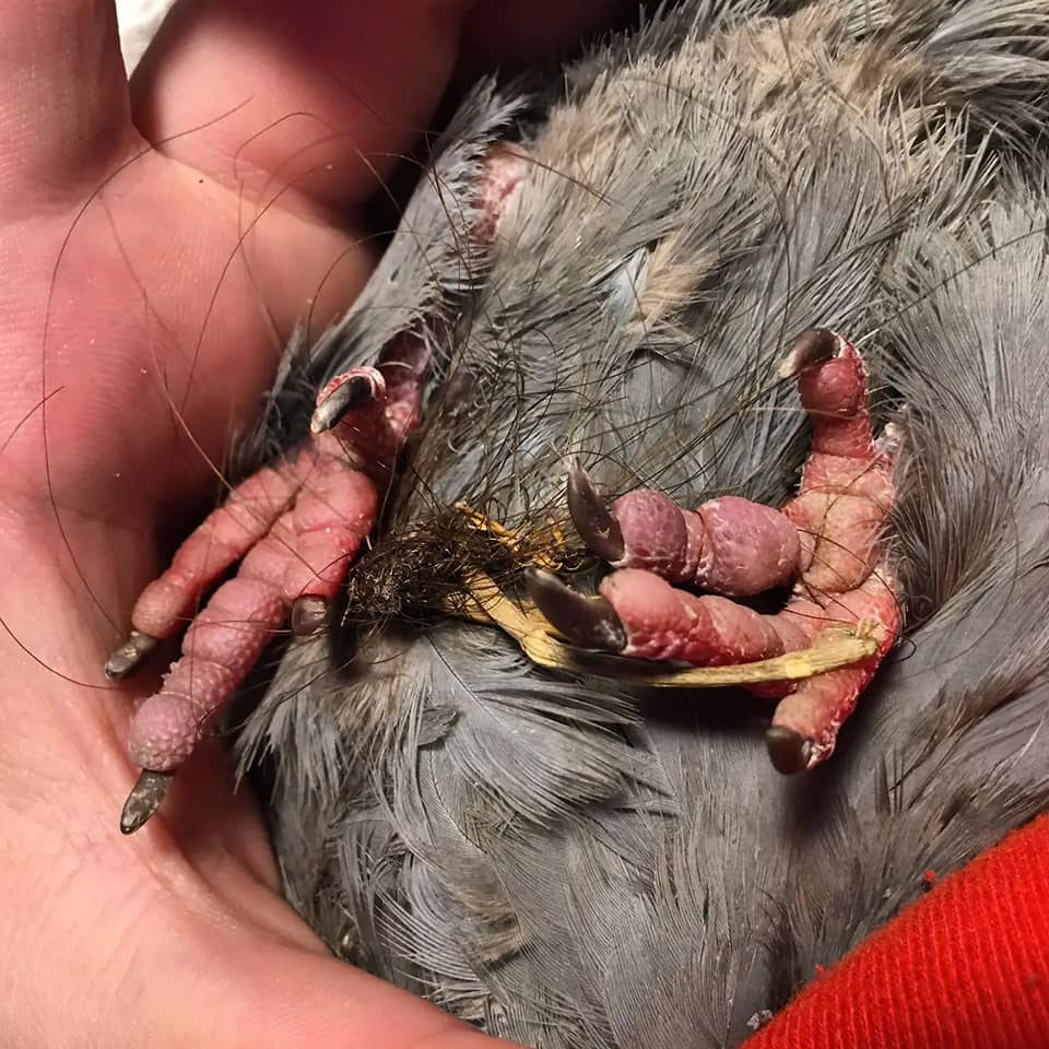 Skip fiel bei unserer Fütterungstour auf, weil seine Füße mit Haaren und Fäden verschnürt waren.