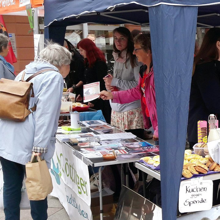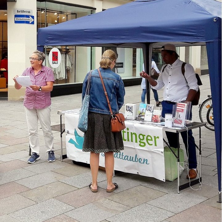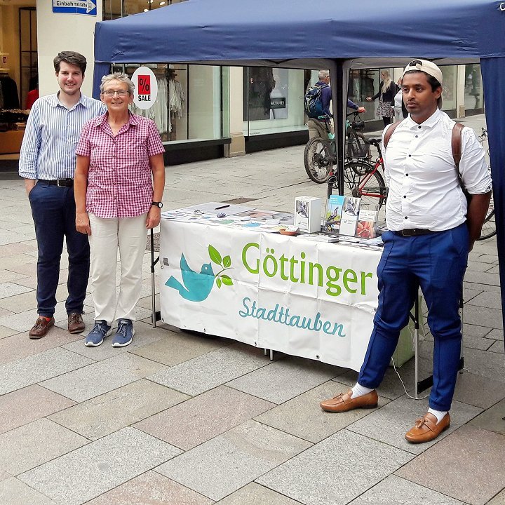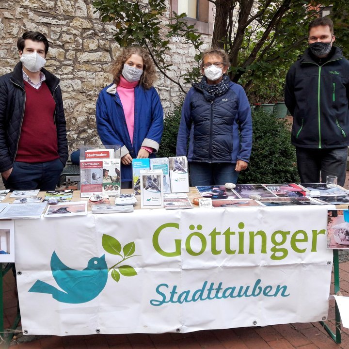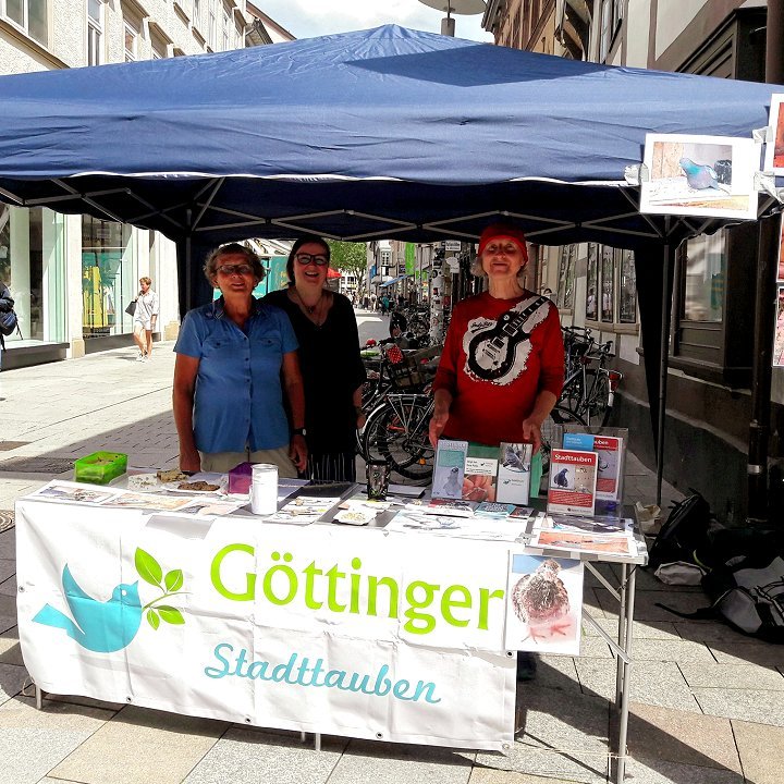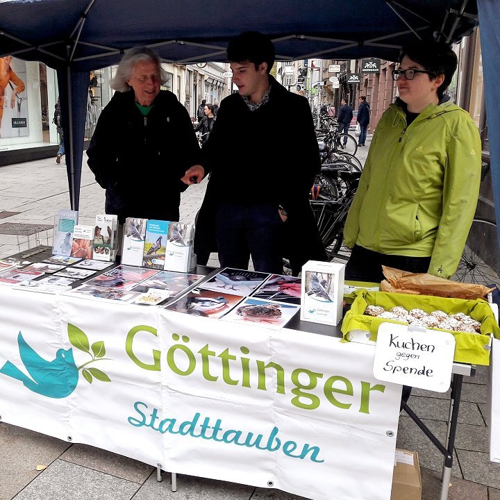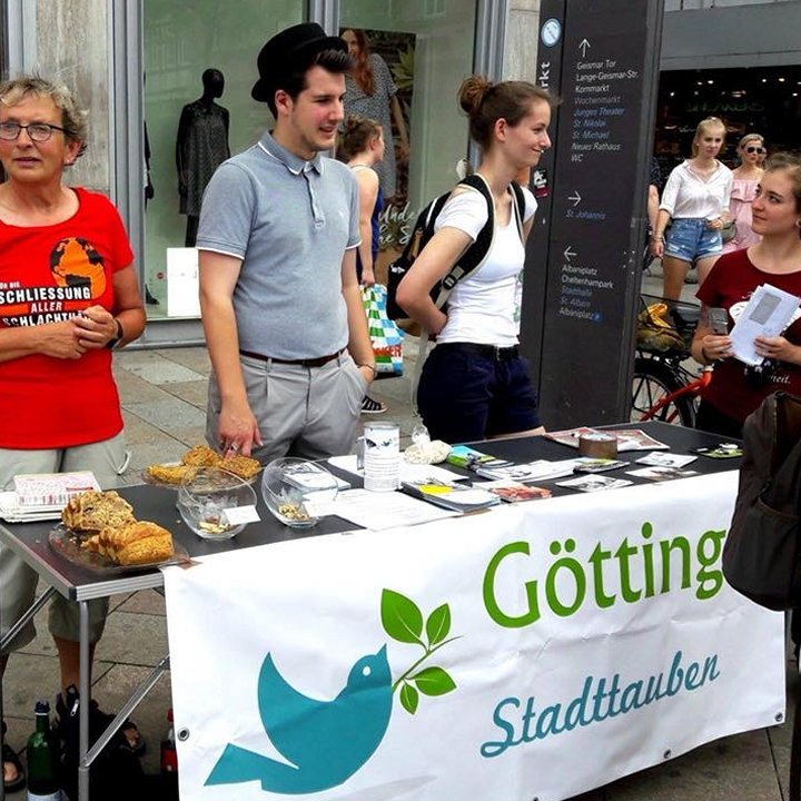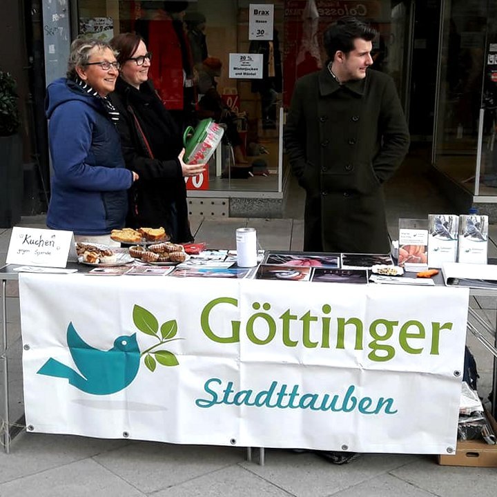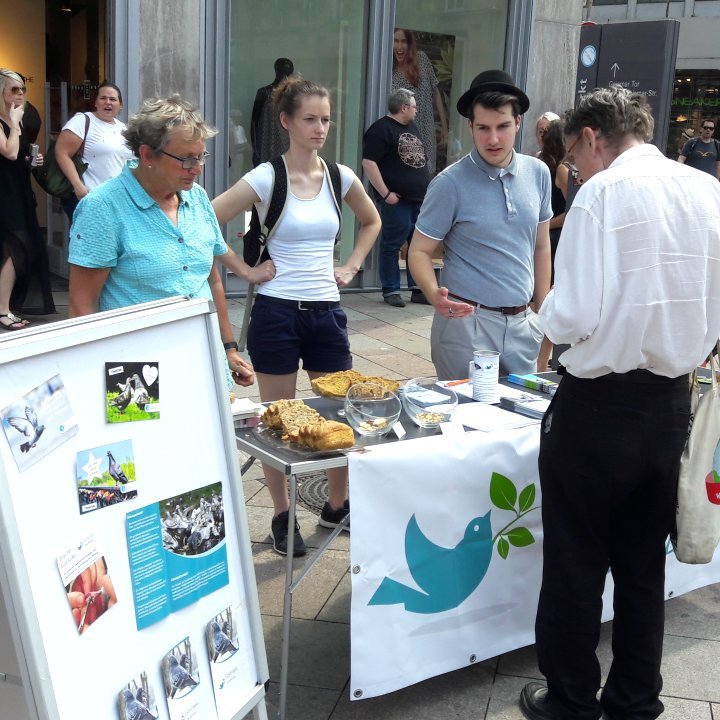 Zur Aufklärung der Bevölkerung über das Leid der Stadttauben betreiben wir außerdem stetig Öffentlichkeitsarbeit: Wir veranstalten in regelmäßigen Abständen Infostände, sind auf verschiedenen Tierschutzveranstaltungen zu finden und in den sozialen und lokalen Medien aktiv vertreten.