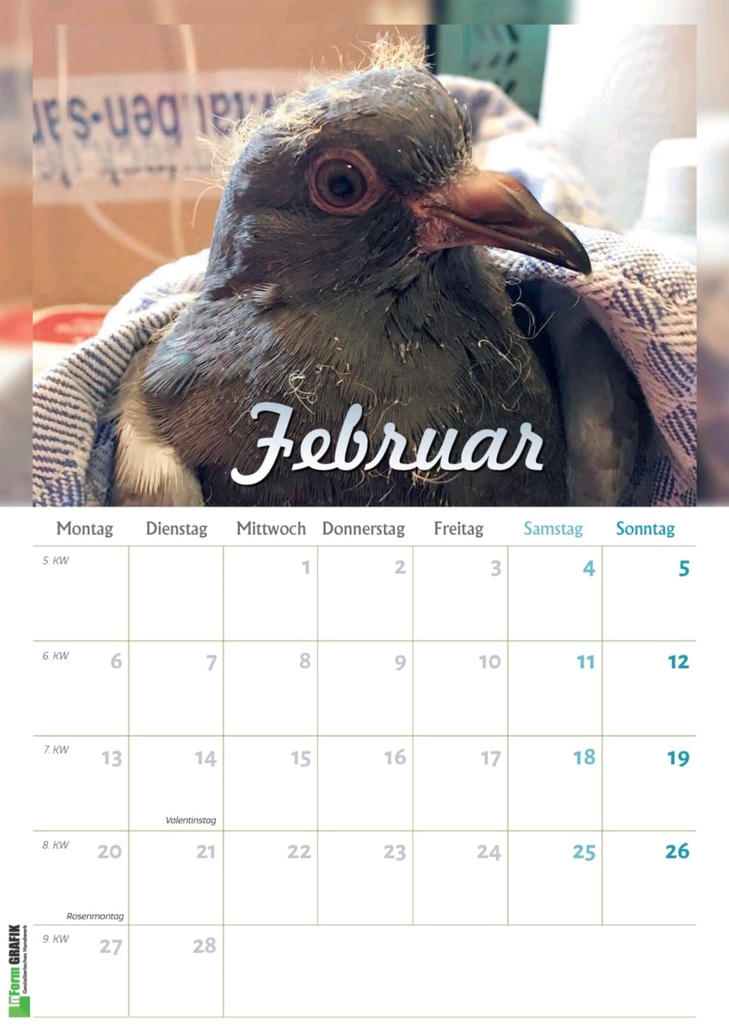 Ihr sucht noch ein schönes Weihnachtsgeschenk oder wollt euer Büro, eure Küche oder andere Räumlichkeiten verschönern und dabei gleichzeitig unsere Tierschutzarbeit für die Stadttauben unterstützen? Dann haben wir etwas Schönes für euch: Denn wir möchten euch auch das Jahr 2023 wieder mit unserem Stadttauben-Wandkalender versüßen!