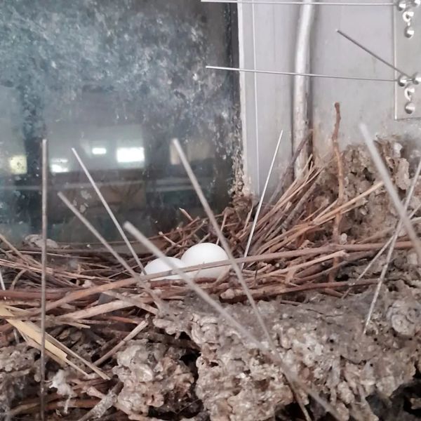 Heute haben wir mal wieder erfolgreich Eier tauschen können. Diese Taube hatte sich einen besonders ungeeigneten Platz für ihr Nest ausgesucht, doch vielerorts haben die Tauben gar keine andere Wahl, als sich zwischen den Spikes niederzulassen.