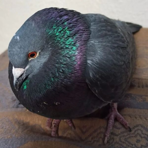Luis hat ein ordentliches Anflugtrauma, wodurch er gerade auch nicht flugfähig ist. Ein Anflugtrauma erkennt man unter anderem auch an den eingerollten Zehen, was bei ihm der Fall ist.