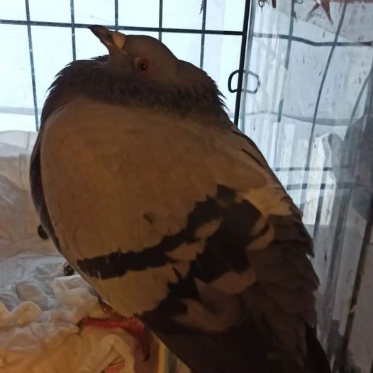 Peterchen wurde vor ca. zwei Wochen flugunfähig in einem Feld gefunden. Er konnte direkt gesichert werden. Der Finder entschied sich zunächst ihn zu behalten, da er sich mit Tauben auskennt.