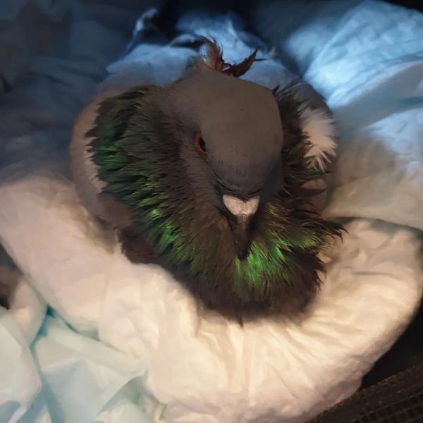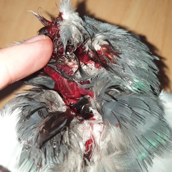 Heute stellen wir euch Thori vor. Wir haben sie gestern Abend an unserer Futterstelle an der Jacobikirche eingesammelt. Sie suchte Schutz unter einem Auto. Man konnte sie aber einfach hochnehmen. Sie war zu erschöpft, um zu flüchten. Der Hinterkopf ist skalpiert sowie auch ein Teil vom Nacken. Wahrscheinlich ein Greifvogelangriff.