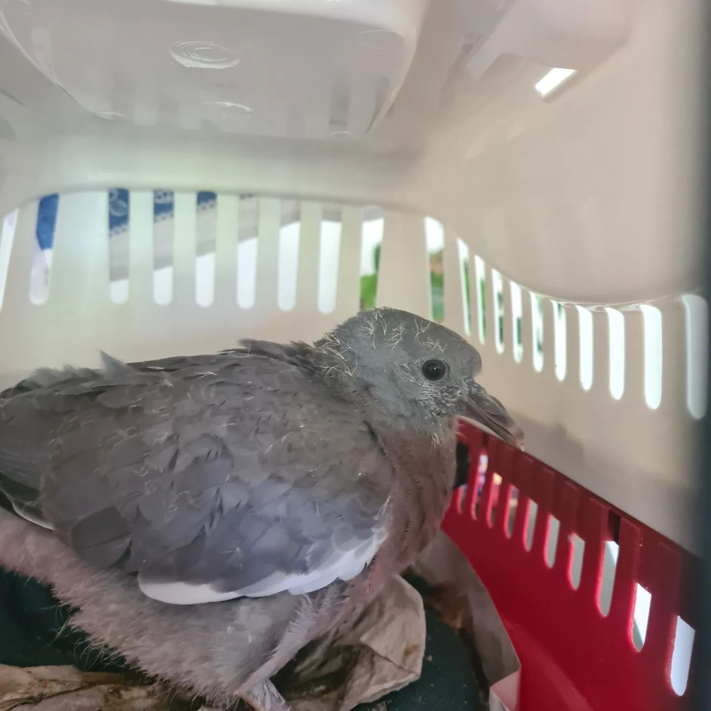 Die Finderin von Grim hat ihn leider wieder ausgesetzt, weil wir nicht schnell genug reagierten und erst nach einer halben Stunde zurückriefen. Da die Beiden noch zu klein zum Fliegen oder Laufen sind, war er zum Glück noch an der Stelle, an der er wieder ausgesetzt wurde. Ihm hätte sonst was passieren können!