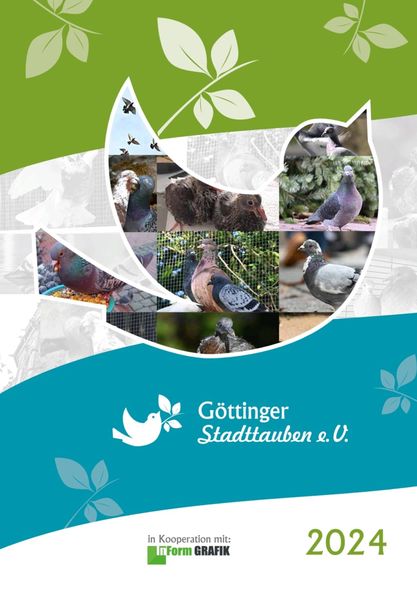 Wir finden auch das sechste Jahr in Folge, es ist wieder ein richtig schöner, professionell gestalteter Kalender mit Fotoaufnahmen einiger unserer Pflegetauben, Tauben aus unserem betreuten Taubenschlag und unserer Handicapvoliere sowie Motiven von Tauben in der Stadt geworden. Der Kalender entstand erneut in Kooperation mit InForm GRAFIK (www.informgrafik.de). Eine kleine Vorschau der Bildblätter haben wir hier für euch.