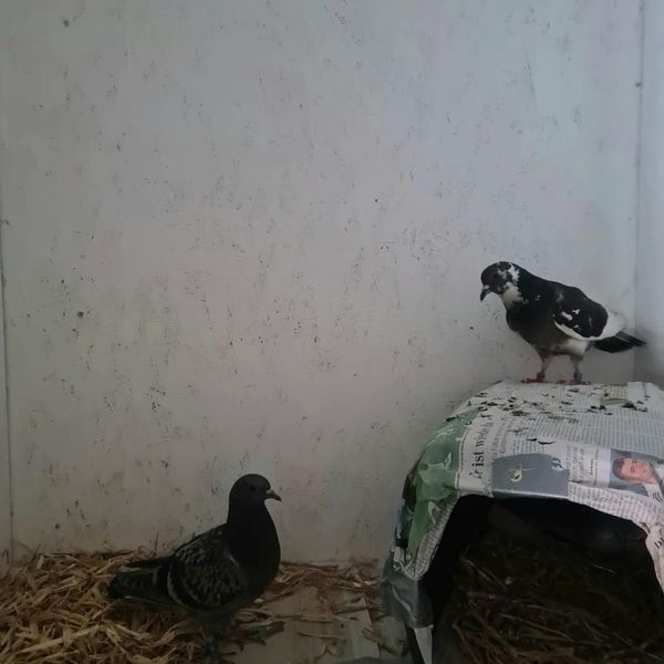 Da Erna und Sonni sich auf Anhieb verstanden, sitzen sie jetzt zusammen in einer Eingewöhnungsbox im betreuten Taubenschlag!