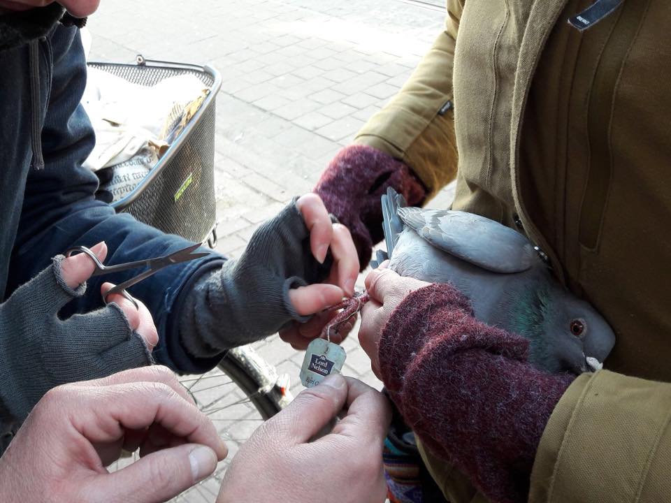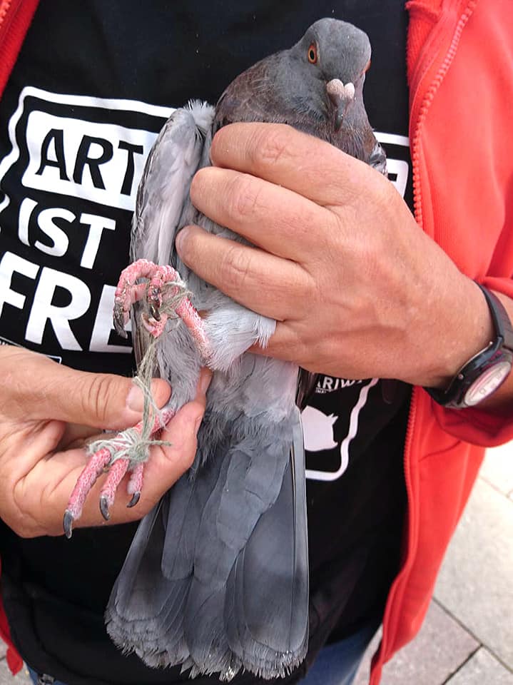 Daher gehen wir regelmäßig durch die Göttinger Innenstadt, um nach Stadttauben Ausschau zu halten, die verschnürt sind. Wir versuchen sie einzufangen und ihre Füße von den Fäden und Bändern zu befreien, sowie gegebenenfalls Wundbehandlungen durchzuführen. Wenn sich der Faden oder das Band nicht sehr tief um den Fuß oder Zeh gewickelt hat, kann dies entfernt und ggf. desinfiziert werden. In drastischen Fällen kommt die Taube in Pflege, dass die Wunden abheilen können. Ein Großteil der Tauben kann meist gleich wieder fliegengelassen werden.
